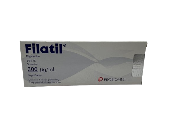 Filgrastim es una solución inyectable utilizada para estimular la producción de glóbulos blancos en pacientes que han tenido un tratamiento de quimioterapia o que sufren de trastornos hematológicos. Este medicamento es esencial para reducir el riesgo de infecciones al aumentar la cantidad de neutrófilos en la sangre. Se administra a través de inyección subcutánea y actúa promoviendo la salud y el bienestar del sistema inmunológico, ayudando a los pacientes a recuperarse de tratamientos agresivos y mejorar su calidad de vida.
